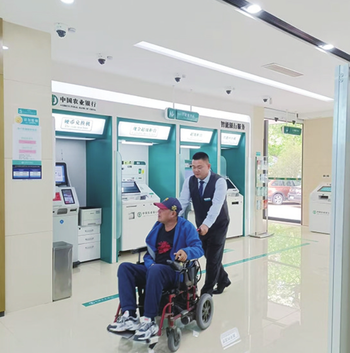 走進(jìn)網(wǎng)點(diǎn),“銀發(fā)元素”隨處可見:老花鏡、輪椅、拐杖、醫(yī)藥箱等適老用品井然有序;超級(jí)柜員機(jī)不僅優(yōu)化了電子指紋簽名功能,還不斷擴(kuò)展大字版業(yè)務(wù)界面,極大方便了老年客戶操作智能設(shè)備;專門設(shè)立的“愛心窗口”前,配有帶扶手的穩(wěn)固座椅,飲用水隨時(shí)供應(yīng),提供優(yōu)先叫號(hào)與全流程“陪伴式”服務(wù)。