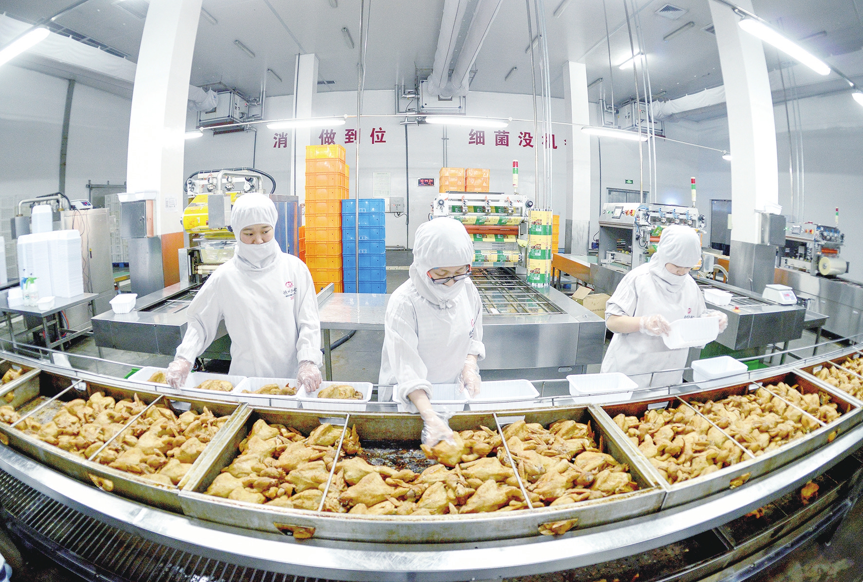 德州扒雞公司員工正對產(chǎn)品進(jìn)行分揀和預(yù)包裝