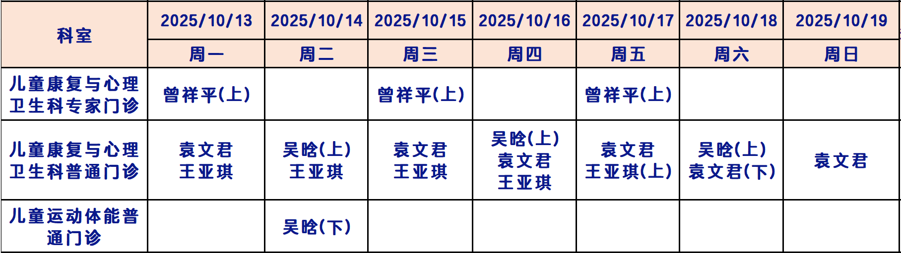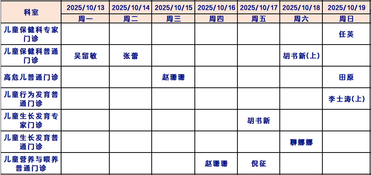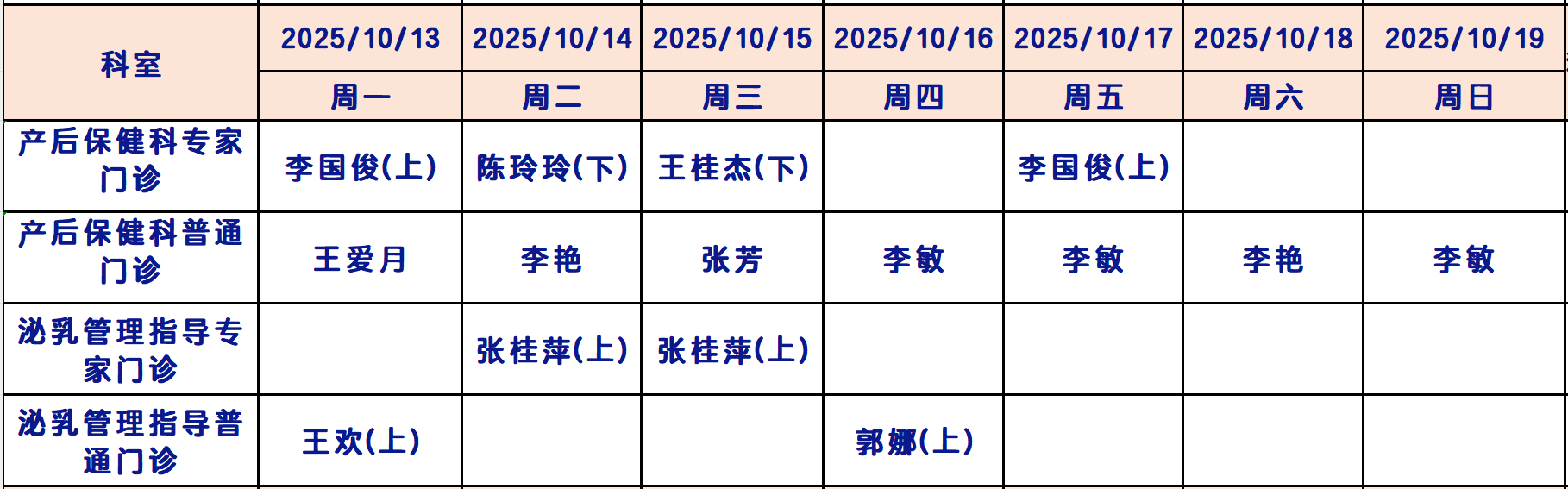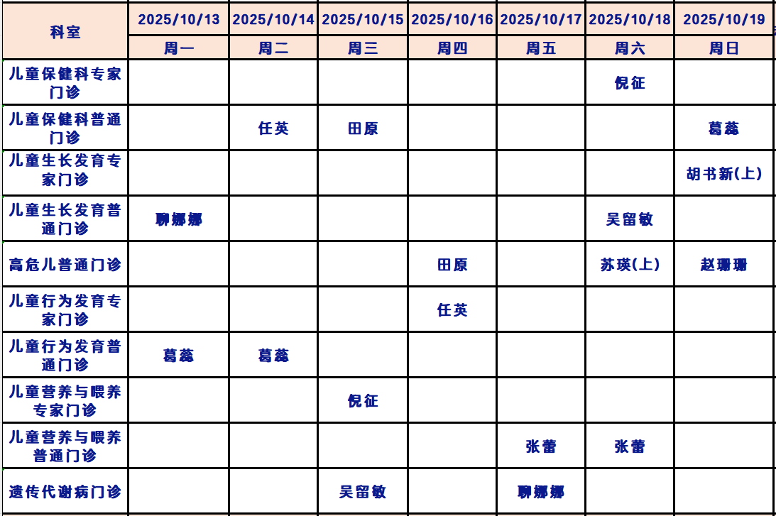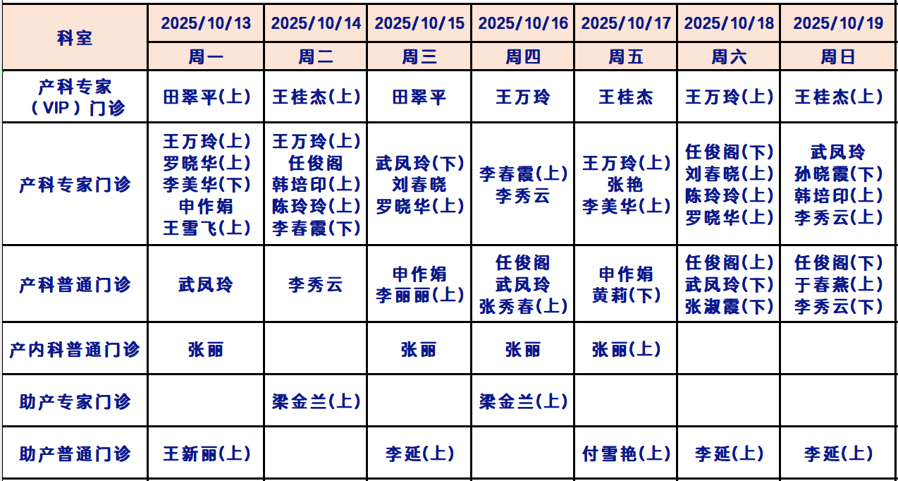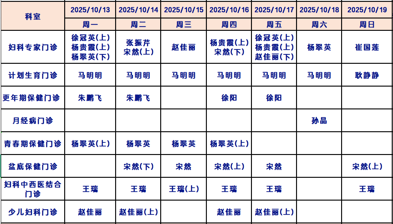 為了更好地滿足廣大人民群眾就醫(yī)需求,德州市婦幼保健院10月13日—10月19日門診醫(yī)生坐診表如下,請您根據(jù)需求選擇合適的時間進行就醫(yī)。