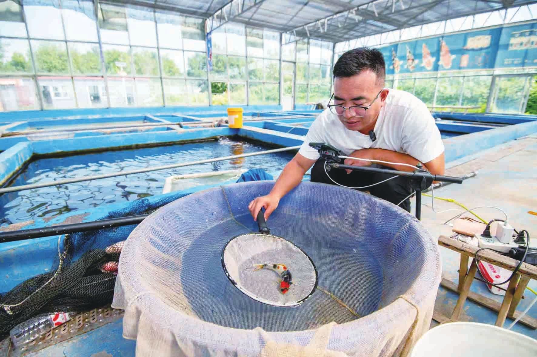 9月30日,慶云縣尚堂鎮(zhèn)錦鯉養(yǎng)殖合作社負(fù)責(zé)人于洪雷通過(guò)手機(jī)直播介紹錦鯉品相。近年來(lái),尚堂鎮(zhèn)大力發(fā)展特色種植養(yǎng)殖產(chǎn)業(yè),鼓勵(lì)引導(dǎo)農(nóng)戶開網(wǎng)店、做直播,深耕線上銷售,拓展市場(chǎng)。目前,該合作社已有10余個(gè)品種30萬(wàn)尾錦鯉,一年可孵化300萬(wàn)尾錦鯉魚苗,通過(guò)直播平臺(tái)年銷售錦鯉10萬(wàn)余尾,年產(chǎn)值突破300萬(wàn)元,并帶動(dòng)村集體增收10萬(wàn)余元。