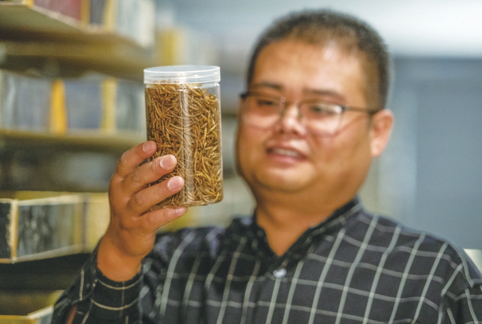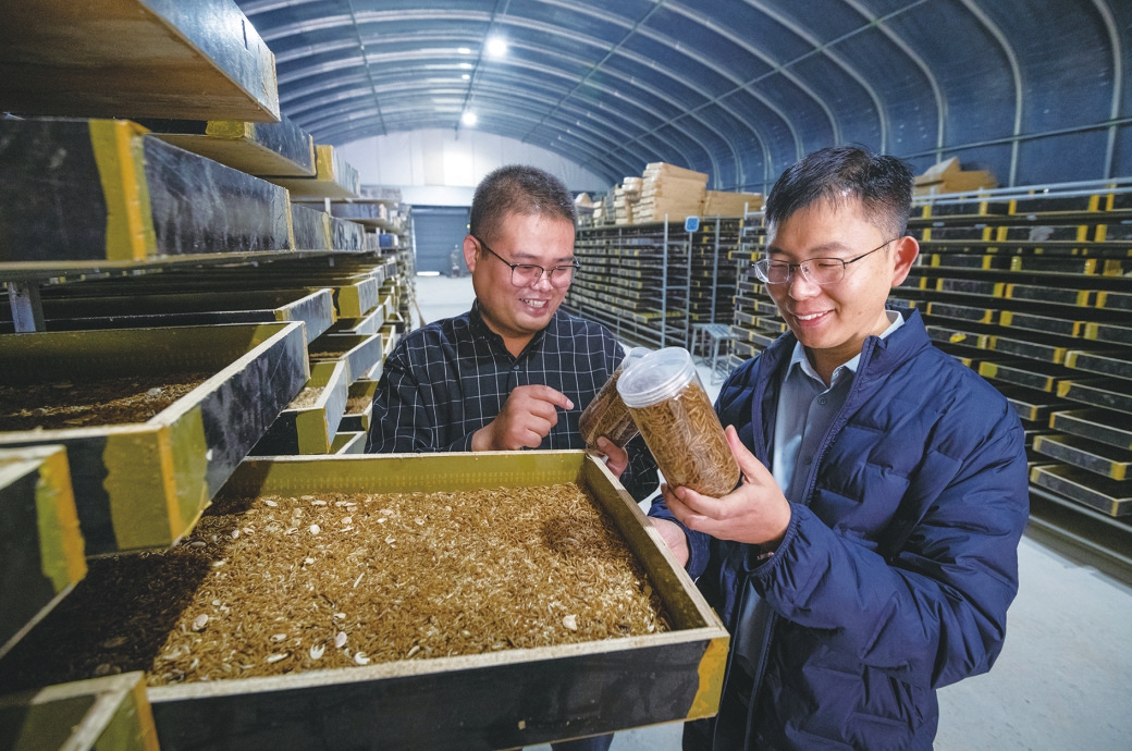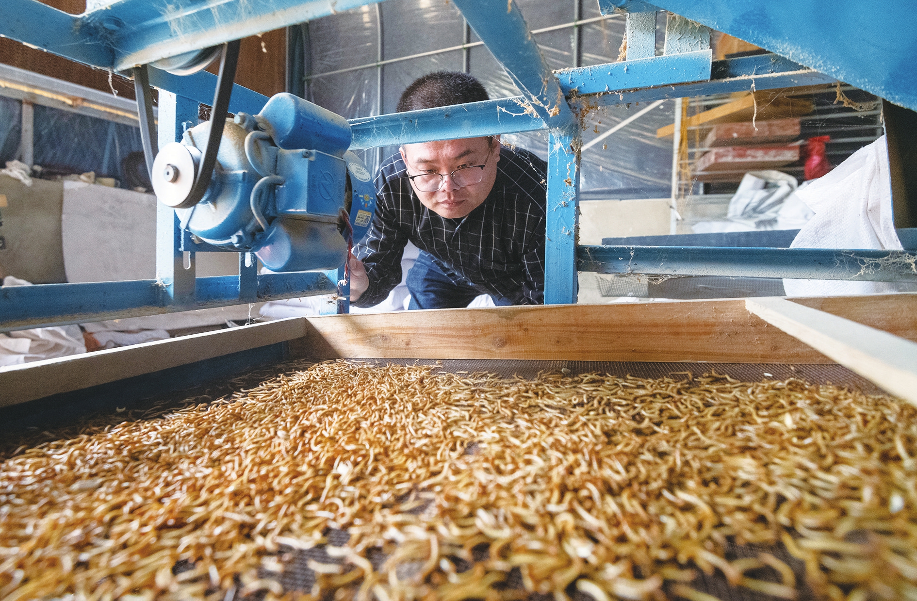 劉波檢查黃粉蟲產(chǎn)品品質(zhì)